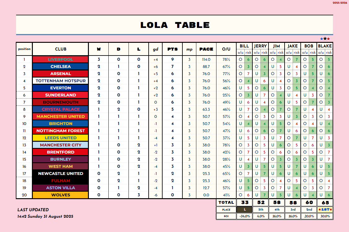 it's early but compared with last year it looks like more teams and O/Us will be in play throughout this season, so it's still anybody's LOLA