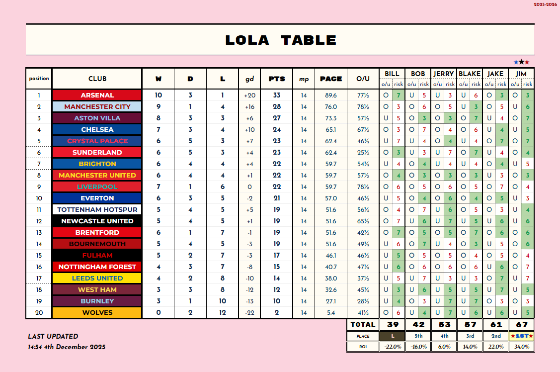it's early but compared with last year it looks like more teams and O/Us will be in play throughout the season so it's still anybody's LOLA